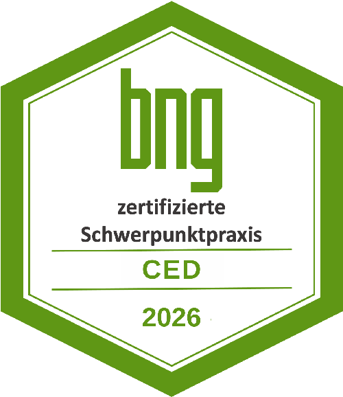 Wir sind eine nach dem bng (Berufsverband Niedergelassener Gastroenterologen Deutschlands e.V.) zertifizierte „CED-Schwerpunktpraxis“. Die Abkürzung CED steht für chronisch entzündliche Darmerkrankungen. Dazu gehören insbesondere Morbus Crohn und Colitis ulcerosa.